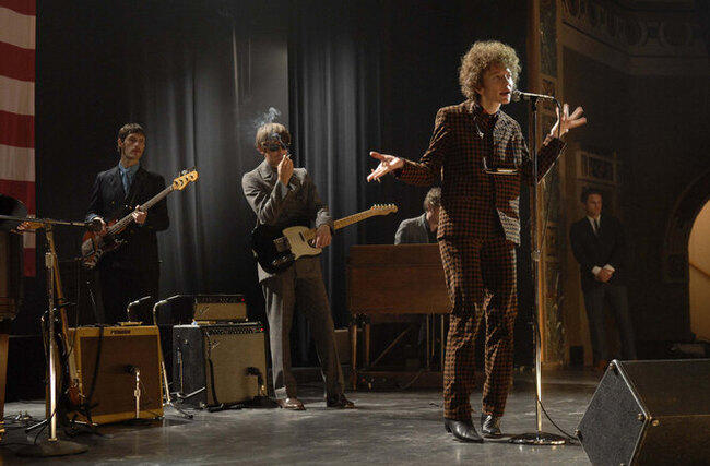 Кейт Бланшетт, Хит Леджер, Бен Уишоу, Кристиан Бэйл, Маркус Карл Франклин и Ричард Гир в картине о становлении Боба Дилана, где каждый из актеров играет персонажа, символизирующего определенный этап в биографии главного героя.