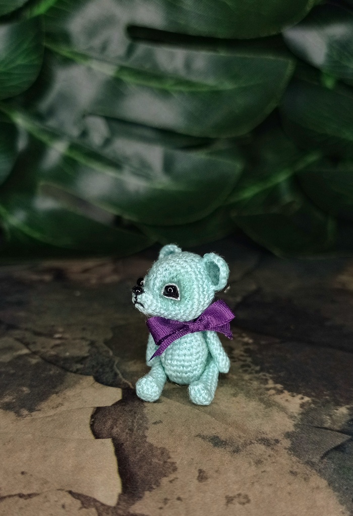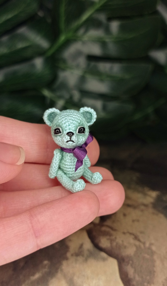 Маленький медвежонок мятного цвета, ростиком 3.5 см