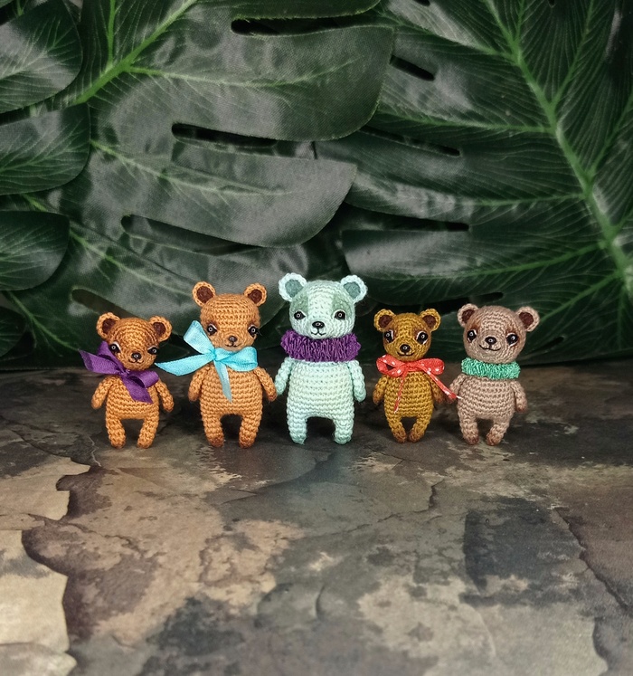Связан из двух ниточек мулине, ручки на нитяном креплении подвижны. Как же он мне нравится🥰