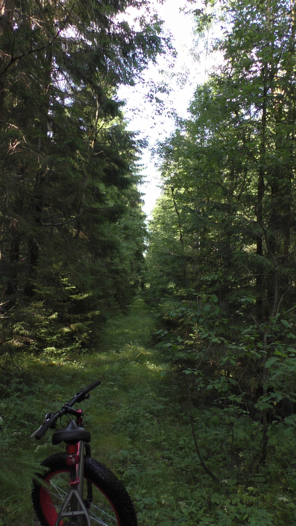 В путь выехали с утра. Небо было затянуто тучками и лишь изредка проглядывало солнце, но к концу пути распогодилось. Знаете, что такое настоящий оптимизм? Это когда ты открываешь карту 39-го года, смотришь, что на ней отмечена дорога, и думаешь: «Ну, раз там есть дорога, то почему бы не проехать по ней на велосипеде!». Ну, в общем проехали. Долго, грязно (перед этим 2 дня шли дожди), но проехали.