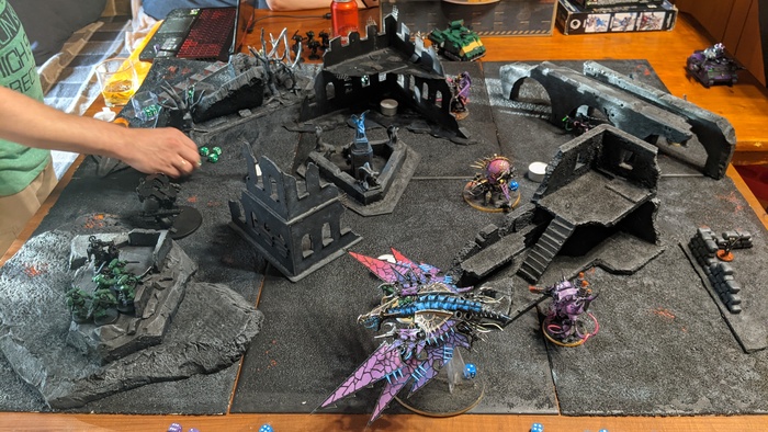 Вторая вунда, практически повсеместный урон 2, выборочное игнорирование модификаторов на попадание, плюс 1 на хит в рукопашной для юнитов с иконой при нереальном количестве атак у большинства боевых единиц делают игру попросту неинтересной. Я сыграл две игры против друкхари и две против тёмных ангелов и все четыре закончились на третьем ходу в виду отсутствия войск оппонента на столе.