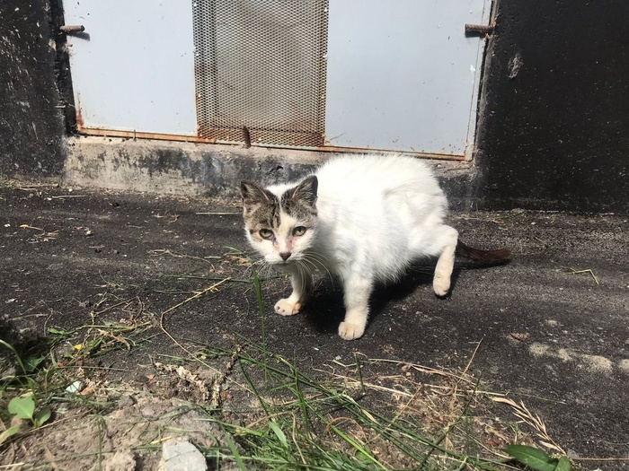 истощённая кошка ищет смелого человека, который станет её куратором, передержкой, домом. обнаружена малышка в Ленобласти, глаза в плохом состоянии, стресс.