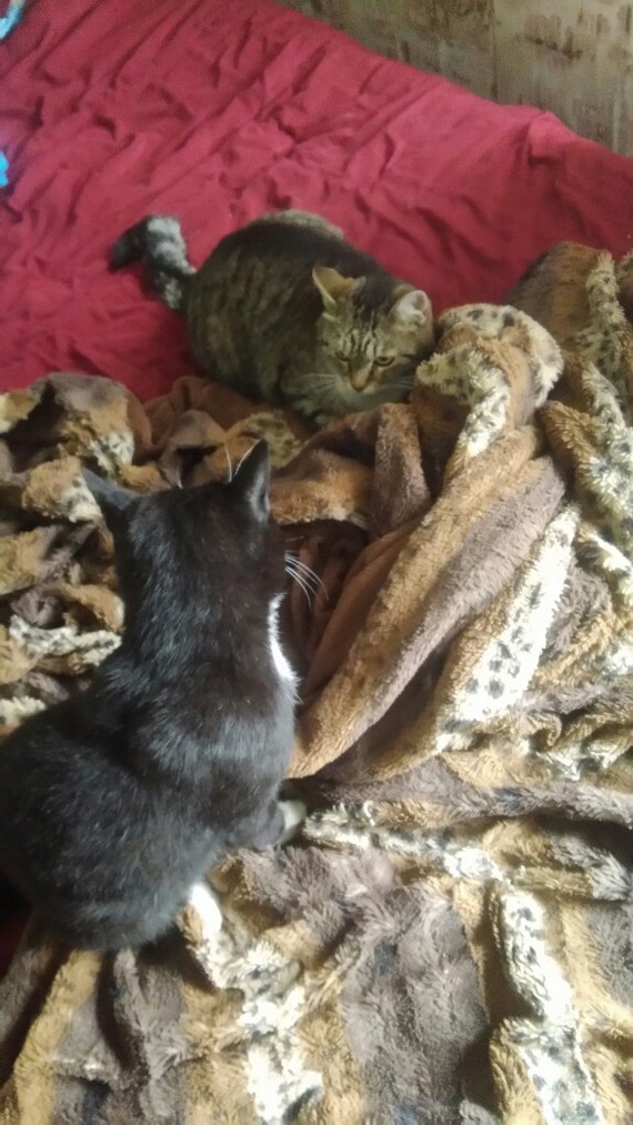 "Здравствуйте,все хорошо..ночью вчера с мужем спала,кот при знакомстве по морде получил,но ничего подружаться еще.осваивается потихоньку..