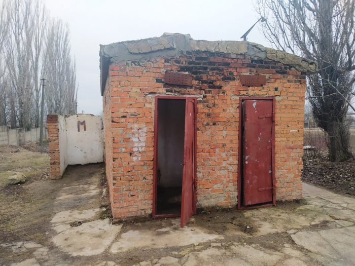 - Туалет: кирпичное строение на территории, отдельно стоящее от расположения. Ходят при выходе на улицу. По рассказам, примерно везде одинаковые. Унитазов нет. Дырки в полу, не ограждённые ничем между собой. Мухи, запахи. Всё это есть. (фото ниже не из распределка, но довольно похоже. нашёл максимально приличное наглядное фото, чтобы не пришлось добавлять тег "жесть".