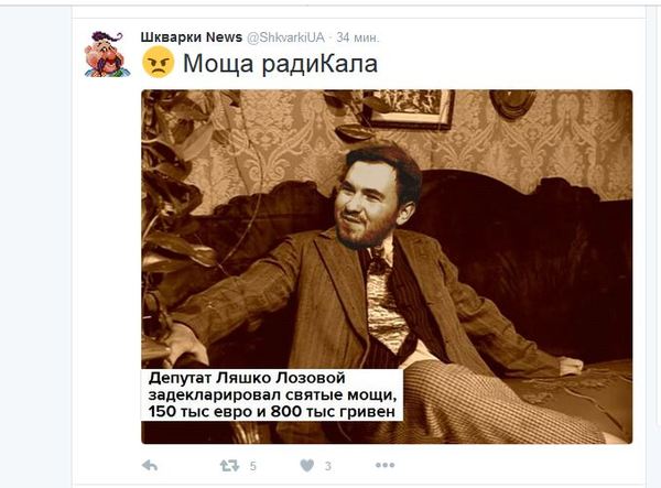 После опубликования деклараций политики испугались за свои доходы))) Глава фракции партии "Блок Петра Порошенко" Игорь Грынив предложил ОГРАНИЧИТЬ ДОСТУП к электронным декларациям чиновников "предлагается установить, что отдельные сведения, которые указываются в декларации, а именно сведения о ценном движимом имуществе, стоимость и размер полученных подарков, имеющиеся денежные активы, в том числе наличные средства, средства, одолженные третьим лицам, активы в драгоценных (банковских) металлах, финансовые обязательства, расходы и все сделки, совершенные в отчетном периоде и т.д., будут относиться к информации с ограниченным доступом и не подлежат обнародованию"
