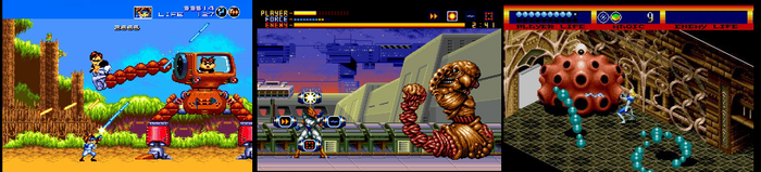 Была такая компания Treasure, история которой началась с создания игры Gunstar Heroes, которая на первый взгляд не отличалась от обычных аркад, в частности, вышедшей годом ранее Contra 3 the Allen War - насколько типов оружия, два слота для них и несколько боссов на каждом уровне. Уникальной же особенностью в игре было то, что активировать можно было два оружия не только по отдельности, но и вместе, что давало 14 вариантов вооружения.