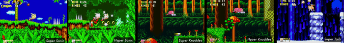 Ну и конечно сбор изумрудов хаоса, которые изначально были введены только как дополнительное испытание для получения расширенной концовки, но, например, в третьей части уже давали возможность Сонику превращаться в Сверх форму, в которой он начинает игру.