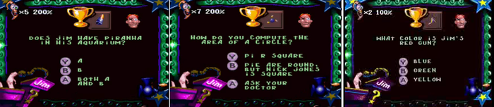 В одном из уровней можно было поучаствовать в весьма сложной викторине. И сложность эта вызвана не только тем, что она была на английском, а ещё и тем, что ответы в ней (а, зачастую, и вопросы) были абсурдны, как и вся игра.