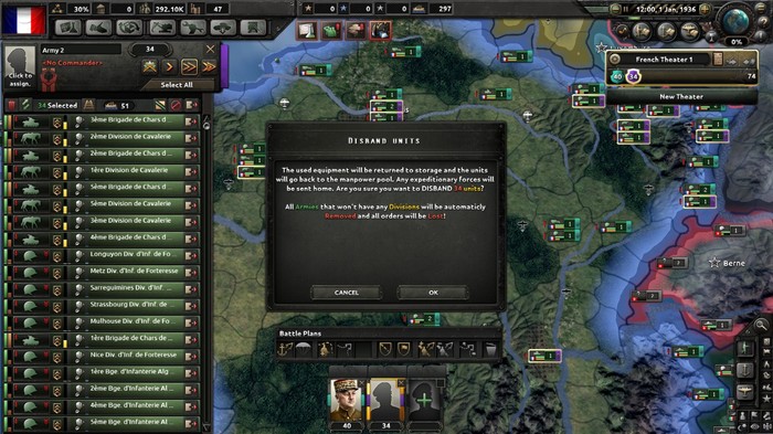 Сразу же с самого начала, видим довольно крупную Forces armées françaises. Благо тут и Пехота на грузовиках, и танки, и пехота, и горная пехота, и даже кавалерия.