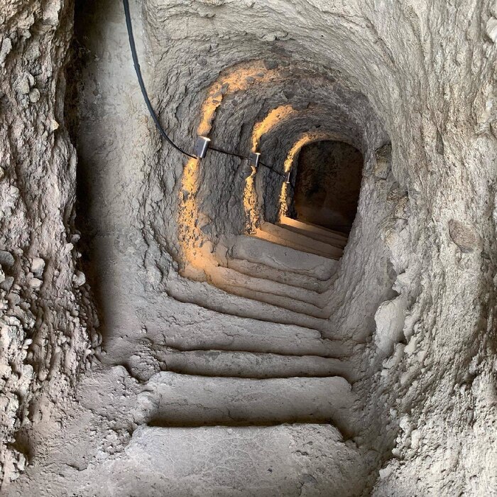 Он был построен в 1156г, другая легенда гласит, что в скале было высечено 365 комнат - по одной на каждый день, а также многочисленные тайные ходы, система канализации и орошения. Сегодня здесь около 600 помещений, которые уходят вглубь до 50м, по части из них можно прогуляться.