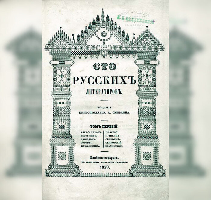 В 1839 году Смирдин затеял огромный проект, который сейчас бы назвали амбициозным. Он решил выпустить серию из 10 книг под названием “Сто русских литераторов”. Под обложкой каждого тома читателя встречала десятка авторов, представленных небольшими, но яркими произведениями. Тома выходили раз в год и были оформлены просто роскошно – каждому писателю полагался свой собственный портрет, заказанный в Англии у лучших художников.