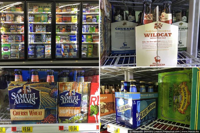 27 Пивные полки. Пиво — единственный алкоголь, который можно купить в Волмарте и вообще в любом магазине, кроме специального алкогольного. За все штаты не скажу, но в Вирджинии именно так. Пива много. Американцы вторая пивная нация, которую я уважаю. В том числе и потому, что они взяли лучшее у главных пивоваров планеты — бельгийцев. Наверное, нигде больше, кроме этих стран, вы не найдёте такое разнообразие именно типов пива. И опять же, любите чешский пилзнер? Вот вам чешское. Нравятся английские эли? На здоровье, пейте! Для особых извращенцев и “Балтику” в русских магазинах продают.