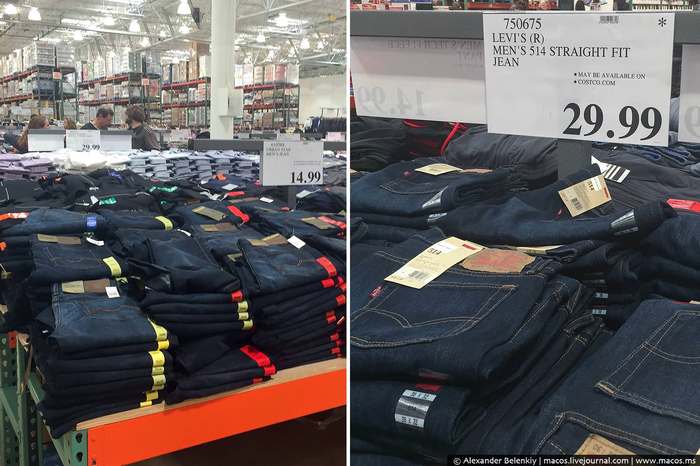 33 В Костко тоже продают всё на свете, от продуктов до одежды. С одеждой есть один трюк: в отличие от Walmart, здесь можно найти и “брендовые” вещи по весьма низким ценам. Одёжку продают поштучно.