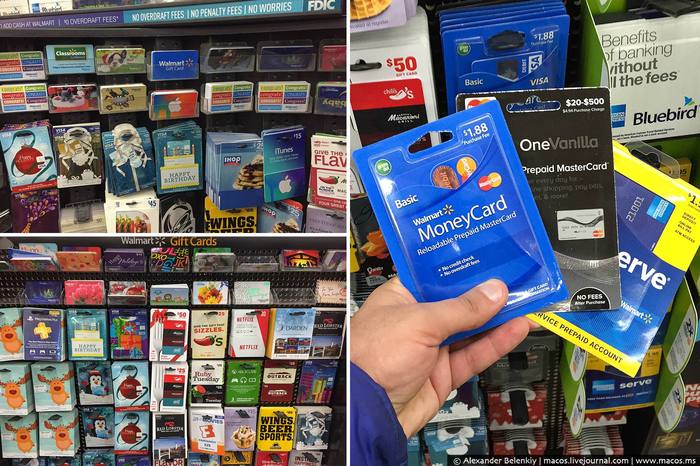 29 Перед зимними праздниками многие приезжают в Волмарт ещё и за подарочными картами. То, что в России почему-то так и не прижилось, в Штатах чуть ли не главный подарок для друзей, но не очень близкий. Каждая сеть ресторанов и магазинов имеет свои карточки. Знаете, что ваш приятель любит ходить в стейк-хаусы Outback? Подарите ему карту на 25 долларов. Этого хватит, чтобы он сводил жену в ресторан, как раз в эту сумму обычно обходится ужин на двоих. Есть и предоплаченные банковские карты. Не знаешь, что подарить, а наличные в конверте неприлично? Подари Визу или Мастеркард, человек сам решит, что купить.