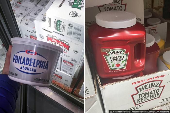 34 А вот еду придётся брать оптом, несколько штук. Или просто большую специальную упаковку. Такой банки Филадельфии или кетчупа на год хватит!
