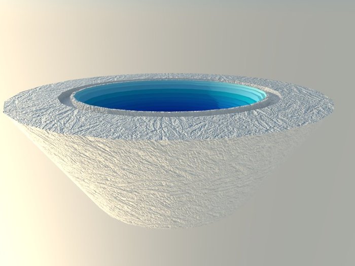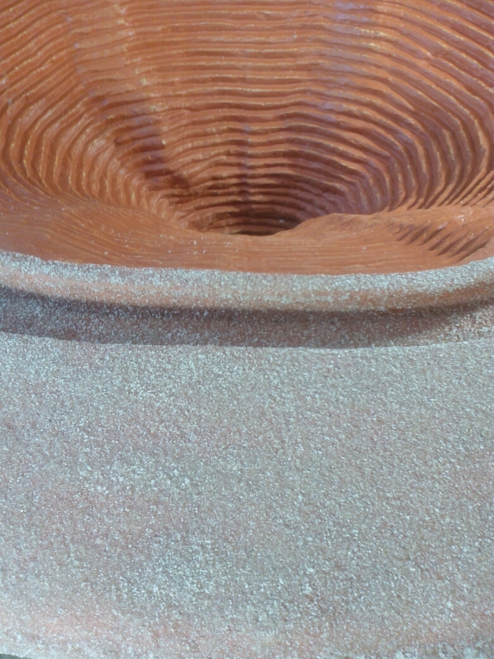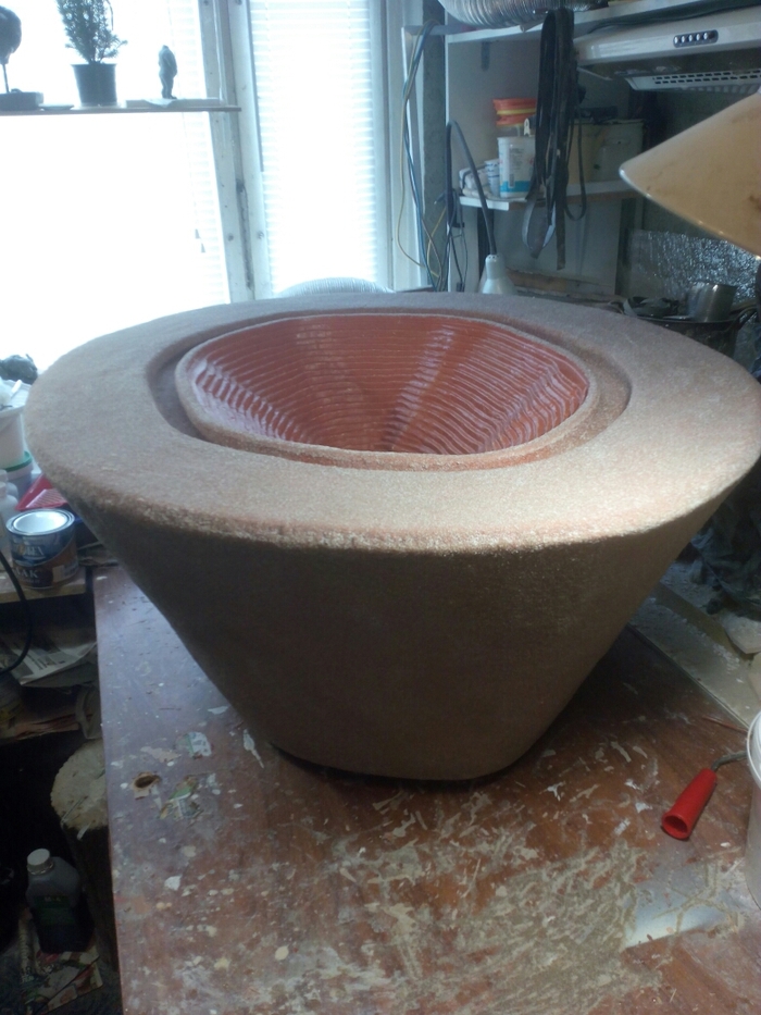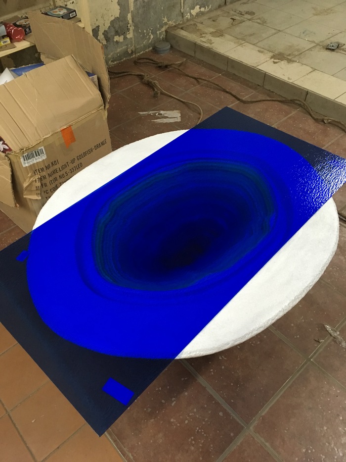 Фото процесса покраски не сохранилось, но там всё понятно: снаружи - жемчужно белый, внутри - террасы покрыты палитрой от бледно-голубого, до (через синий) чёрного (для создания иллюзии глубины).