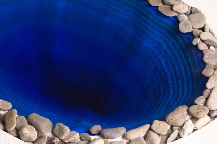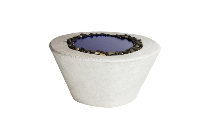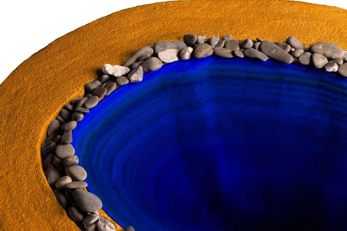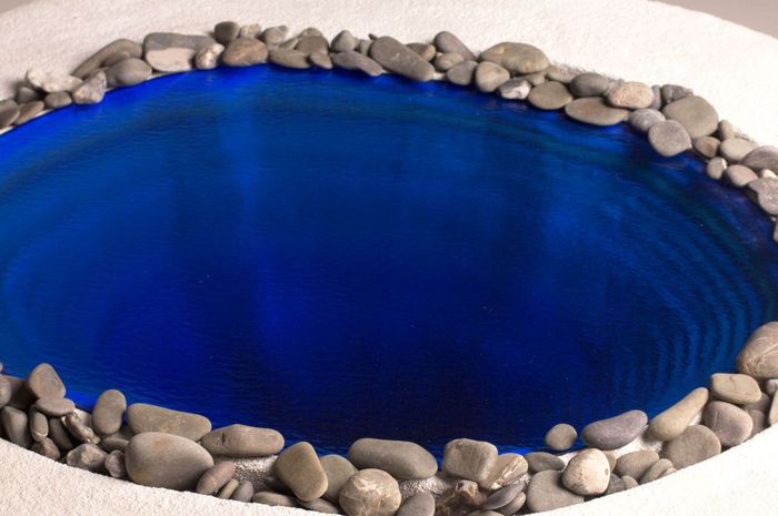 По задумке, в желобок вокруг стекла можно насыпать что угодно, и даже посадить живую траву. Но мне хотелось подчеркнуть именно не живую часть природы, поэтому решил насыпать речной гальки. Тут встал вопрос: а где её взять? Причём, нужного размера и цвета? Оказалось, тоже та ещё проблемка, если вокруг тебя нет каменистых берегов рек, озёр и морей. Вроде бы такая плевая задача - найти несколько булыжников, а отняла она у меня почти две недели времени и уж точно пару баков бензина. ) Но, в итоге все-таки получился он - кофейный столик Blue Abyss.