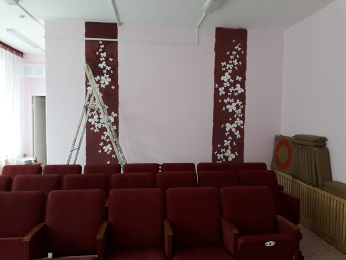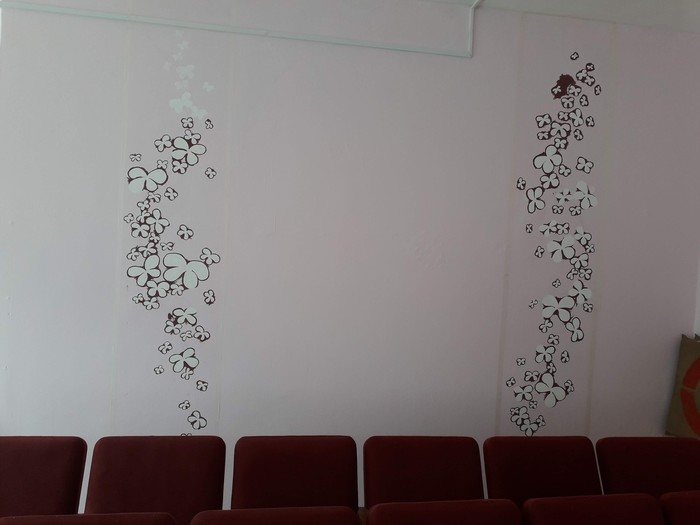 Опыт немного уже имелся, поэтому дрожь в лапках была незначительная. Всего каких-то пару миллиметров, вместо изначального припадка. В масштабах зала не так значительно, согласитесь. Но детям нужно делать качественно и с пристрастием, иначе они чувствуют фальш и даже в сторону твою не посмотрят при очередной встрече. Да шучу конечно^^ Ты ж художник! На тебя не будет пялиться разве что слепой, при условии, что его отвернут в другую сторону.. намеренно о.о Мол не смотри это, так ты не видишь? Счастливый человек!