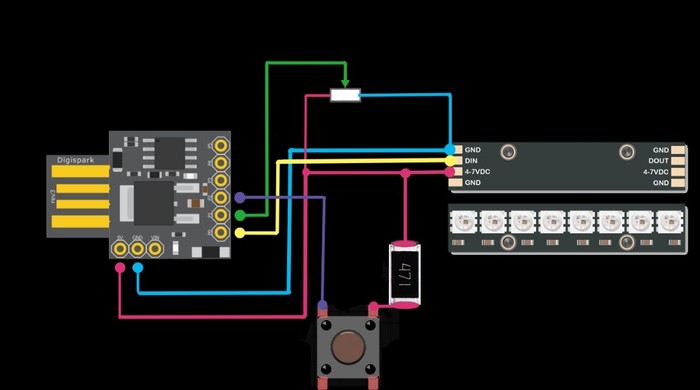 И пал выбор на светодиодный модуль из 8 rgb светодиодов расположенных в ряд, и модуля с микроконтроллером Attiny85.
