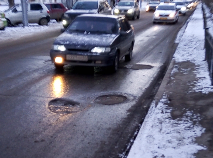 То есть ежедневно в городе на нескольких улицах отключают холодную воду (практически ежедневно) или отопление (отключают реже, но всё же бывает) какую-нибудь дорогу да вскрывают для устранения "порывов". Естественно потом всё это дело закапывают, кладут асфальт, вот только грунт проседает и дороги превращаются вот в это