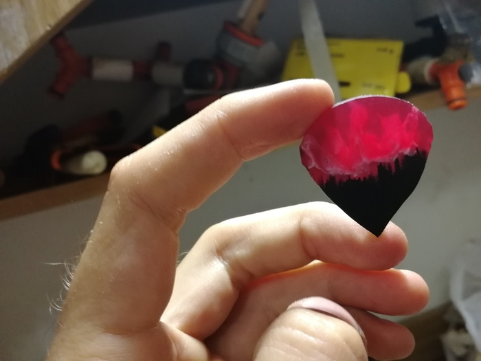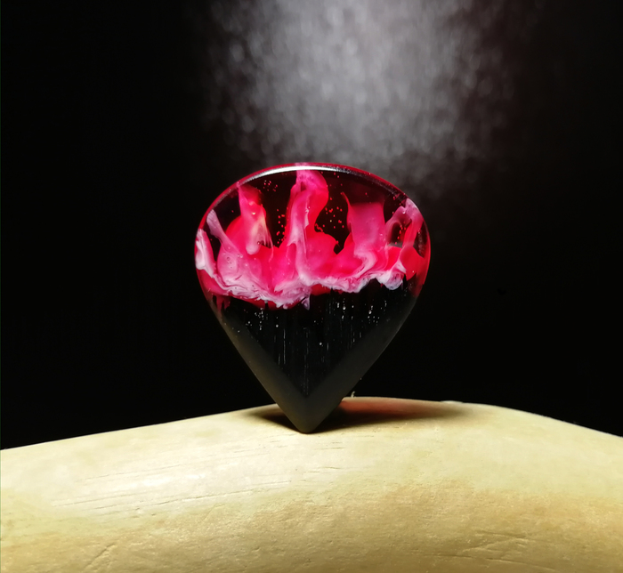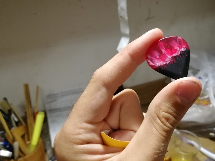 Такой вот индюшаче-карамельный медиатор (штука для игры на гитаре) у нас получился. Если кто-то видит в этих разводах что-то другое, велком ту зе комментс)