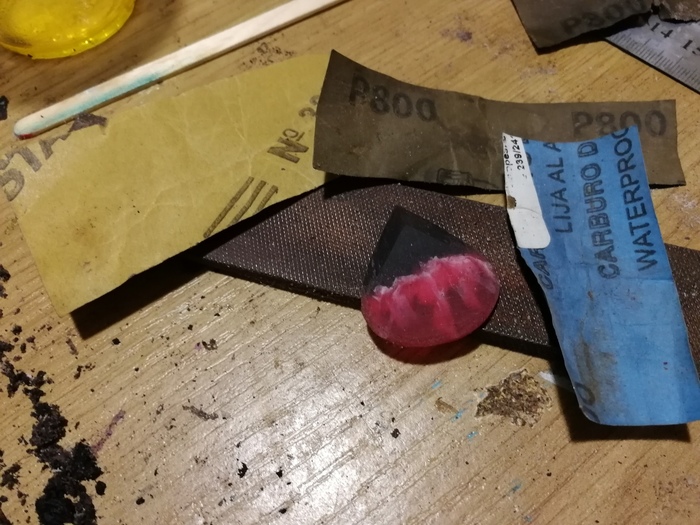 Вроде это момент как раз перед полировкой. До этого использовались наждачки грубые для придания формы, потом 320, потом 800, потом чисто по округлостям прошелся 1500.
