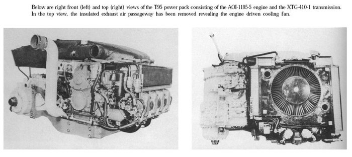 Двигателей предполагалось два – американский и немецкий. Это были дизели воздушного охлаждения Continental AVCR-1100-2/3 (мощность – 1475 лошадиных сил при 2800 оборотах в минуту) и дизель жидкостного охлаждения фирмы Daimler-Benz (1500 лошадиных сил при 2600 оборотах в минуту). Оба они использовали одну и ту же немецкую трансмиссию Renk HSWL. Ходовая имела 6 опорных катков и три поддерживающих ролика. Подвеска была гидропневматической, то есть могла уменьшать и увеличивать дорожный просвет машины, а так же изменять её угол наклона к поперечной оси, позволяя улучшать УВН основного орудия. Минимальный дорожный просвет должен был составлять 14 см, а максимальный – 73 см. Машина могла преодолевать брод глубиной по верхушку башни без подготовки, а с подготовкой – глубиной до 5.4 м.