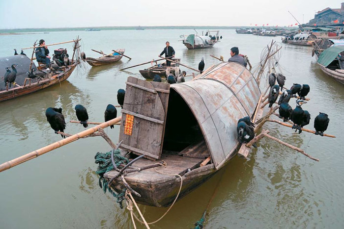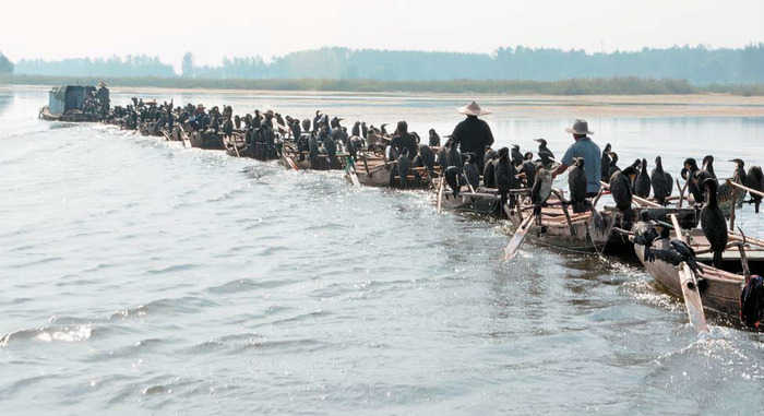 Подготовка молодых бакланов для рыбного промысла в Китае