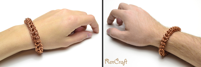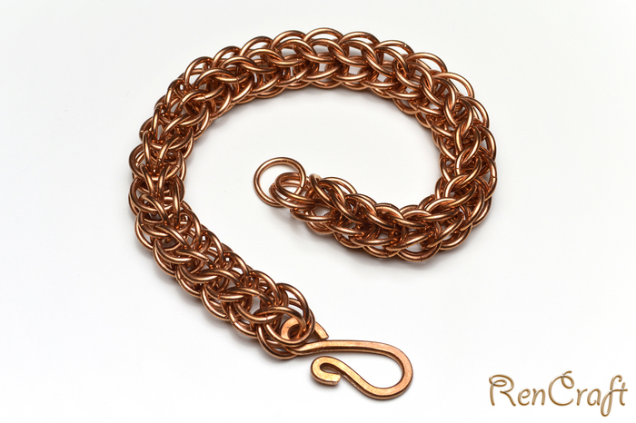 Сегодня небольшой пост посвященный кольчужному браслету, выполненному классическим персидским плетением, но не из стали, а из медной проволоки.