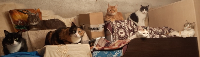 Ну-с. Начну с того, что теперь у нас 9 кошек. Да. 9 кошек, черепаха, и мы с дочкой. Дюжинка, блин.