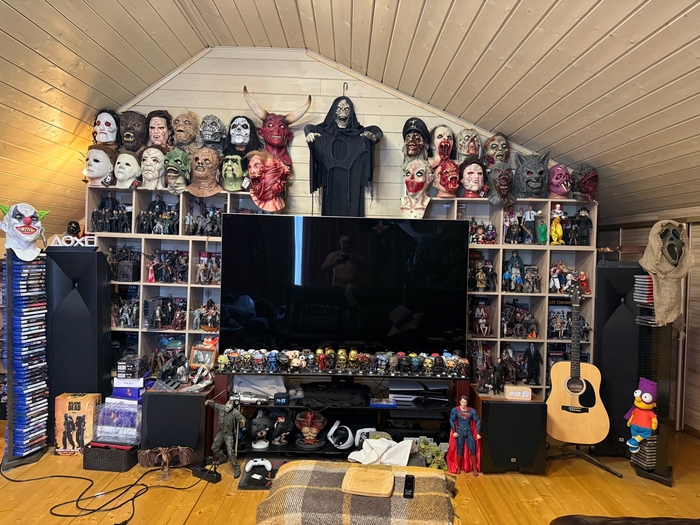 Давно собираю видеоигры, фигурки статуэтки, "ужасные" маски)!