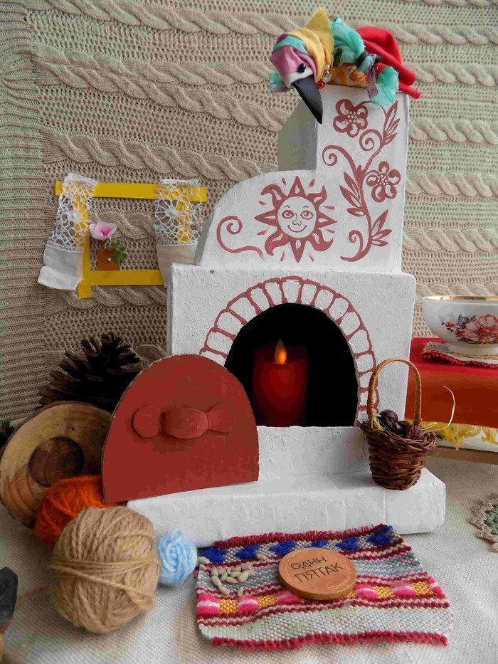 --- Работа над домиком Сороки-Вороны велась подробная. Хотелось, чтобы было большедеталей. На фотоэскизе можно увидеть и живую герань, и семечки, и ягоды шиповника в