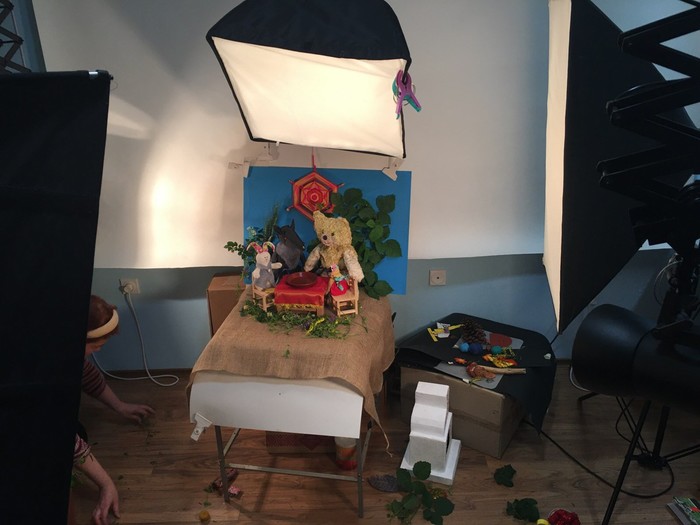 Куклу Сорока-Ворона я сделала сама; печку, лейку и зеркало для спектакля склеил мой муж и соавтор Константин Лидин. А все остальные персонажи пришли в проект постепенно и каждый со своей историей. Ткань для Медведя принесла нам пожилая болгарская поэтесса, когда-то это была накидка на венский стул. Зайца смастерила успешная бизнес-леди. Волку на кафтан пожертвовал свой жилет хозяин известного бильярдного клуба. Посуду в сорочий дом подарила учительница музыки, а куклу Мужика-торгована изготовила обаятельная архитектор в отставке. И это только часть людей, которые поучаствовали в создании визуального ряда проекта.