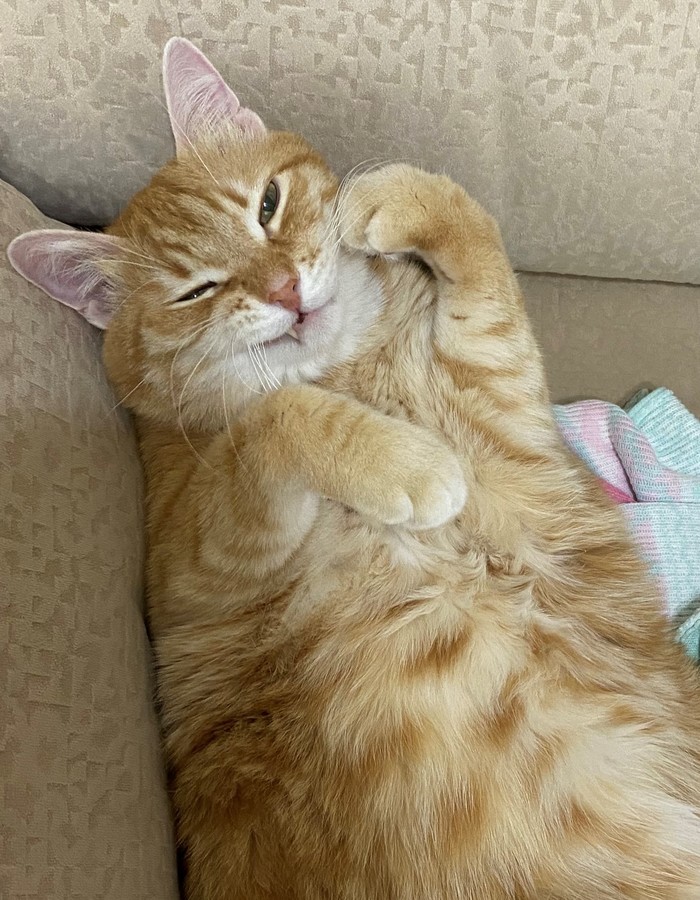 А вот и сам подарок и немного растерянный котейка-скромняга