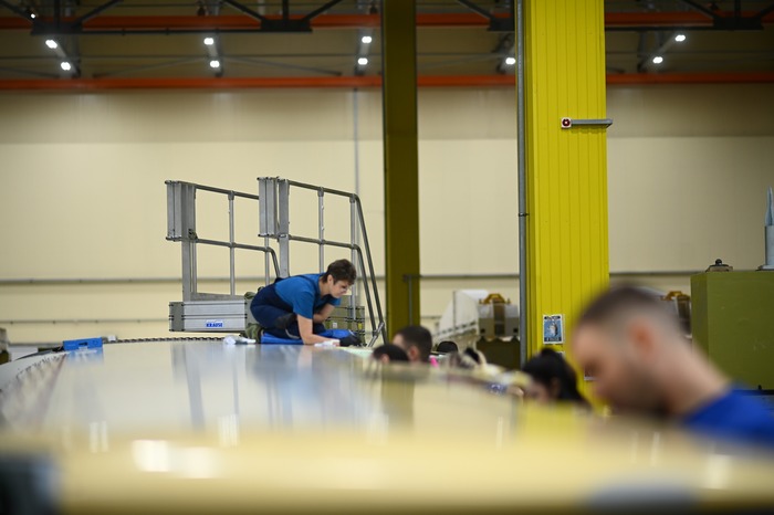 На каждой станции соблюдается свой технологический цикл. Например, на станции окончательной установки панелей крыло может находиться до 4 недель. На станции сборки хвостовой части крыла и носовой части работы занимают также около 4 недель. А на станции сборки каркаса – порядка 10 дней.