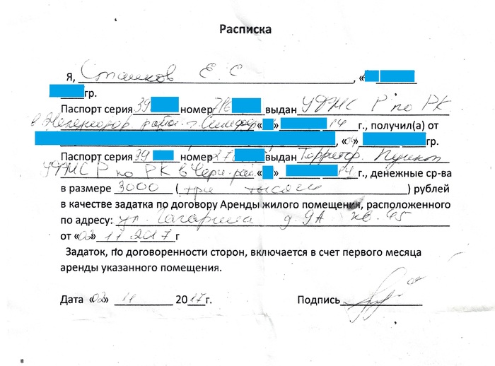 В результате, при просмотре данного объекта недвижимости, с соискателей брал задаток в размере 3000 рублей. Обещав, через 2-3 дня заключить договор т.к. «нужно дождаться приезда хозяйки данной квартиры».