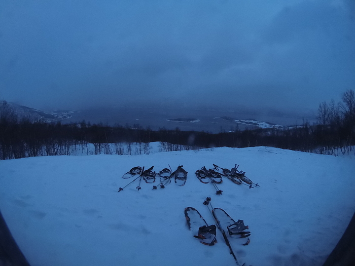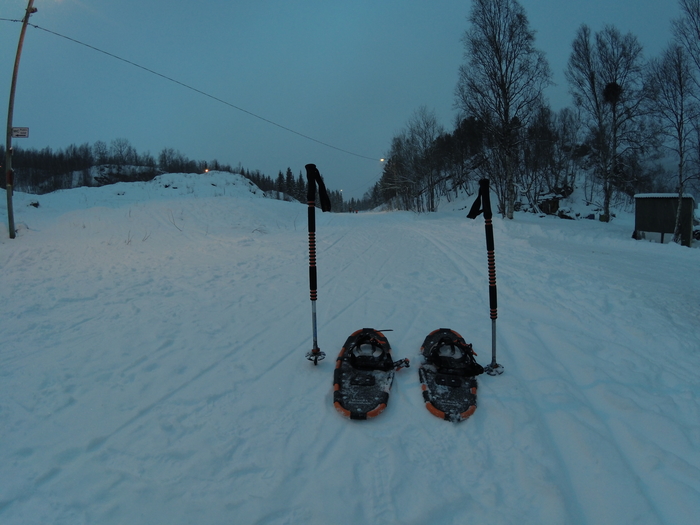 Естественно, как же без этих замечательных приспособлений там, где огромные просторы снега и миллионы интересных мест, куда можно по нему пойти! Причем, главный плюс не в площади снегоступа, а в том, что под носком у вас имеются кошки - в лазании по горам просто незаменимая вещь. Снегоступы мы взяли в прокате в спортивном магазине недалеко от места, в котором жили, за 200 крон. Здесь же было и начало туристических троп в гору, которые делятся по сложности. По пути мы встречали приветливых норвежцев на лыжах, бегом и даже на велосипеде!