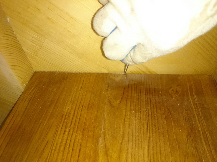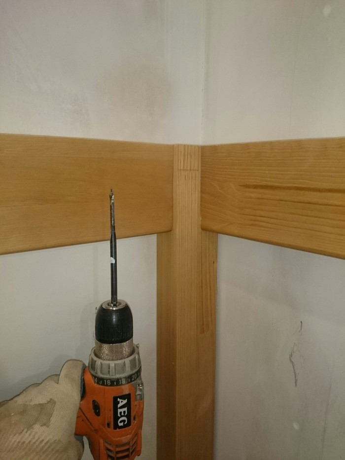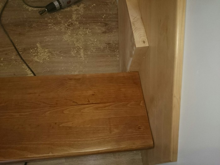 Работа в одно лицо предполагает такие моменты - уголок, он потом снимется и отверстий не видно, т.к. закроются ступенью.