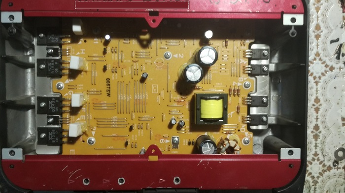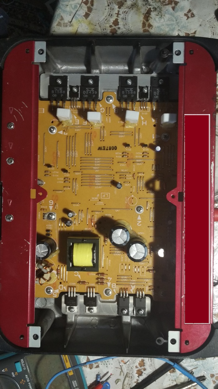 И так, поступил ко мне такой усилок. Красненький, красивенький, не включающийся. С демонтированным предохранителем. Видимо КЗ было, ладно, вскрываем...