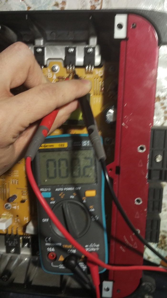 Был обнаружен пробитый транзистор. Заменил на какую то бэцешку соответствующего типа.