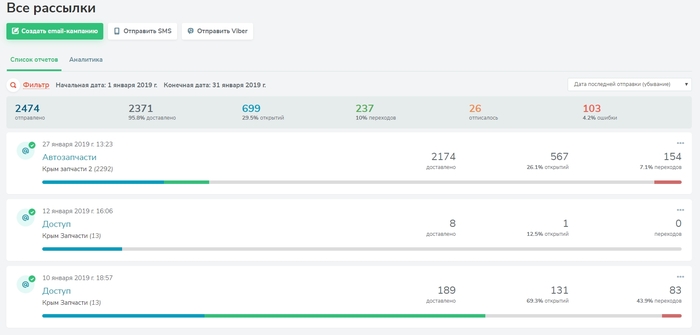 3. 27 была сделана рассылка, трафик на сайт увеличился и регистрации. Поступило несколько заказов. В целом результат не плохой, хотелось бы конечно больше прочтений. Рассылка по факту бесплатна, т.к. софт был куплен год назад и воспользовался предложением одного сайта с бесплатной рассылкой в 2500 писем.