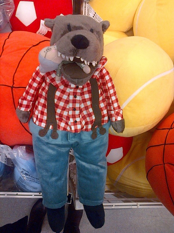 Сюрприз! У волка пасть переходит в брюхо, которое потом можно аккуратно "вспороть" за липучки. Наглядное действие сказочки про Красную шапочку
