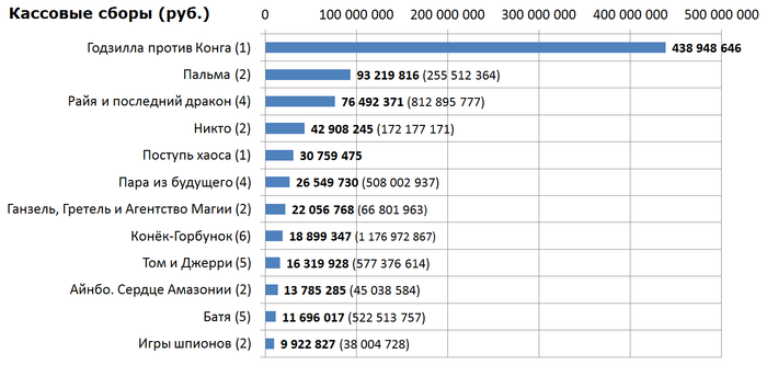 Цифра в скобках после названия обозначает, какую неделю фильм идёт в широком прокате.