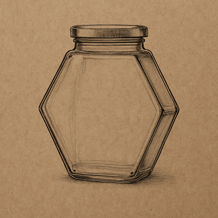 Началось с простого карандашного эскиза стеклянной банки. Форма — нестандартная, и мне было важно сохранить пропорции. В ответ получила чуть более проработанный набросок — с объёмом и светом.