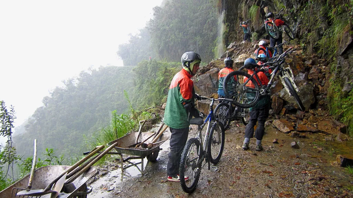 Преодолеть опасный участок можно на велосипедах и мотоциклах, причем только в одну сторону — под горку. Встречного движения тут нет. Развлечение поставлено на поток. В Ла-Пасе за 400 боливианов (5200 рублей) группу туристов на микроавтобусе отвезут на самую верхнюю точку, потом раздадут велосипеды и отправят в путь — повышать уровень адреналина в крови.
