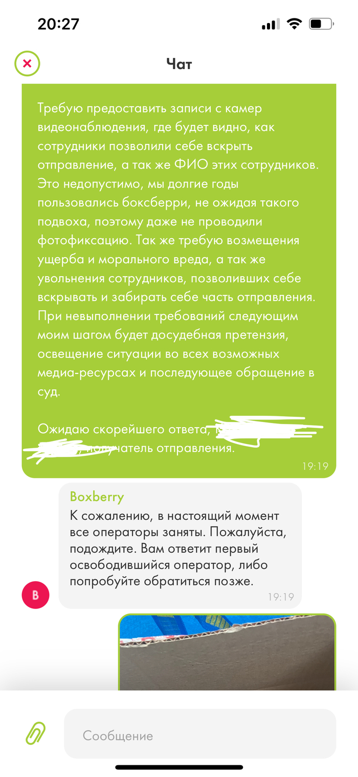@Boxberryhelp, всё нормально у вас? Прошу прокомментировать ситуацию и действия ваших сотрудников.