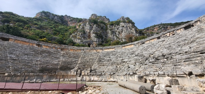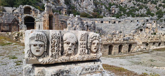Следующая точка интересная - это древний город Мира с сохранившимися в нем ликийскими гробницами, высеченными в скалах (у местной знати считалось чем выше ты похоронен, тем круче). А также там есть неплохо отреставрированный амфитеатр с римских времен и конечно же очень красивые виды. Ехать строго в хорошую погоду, иначе половину впечатлений потеряете!