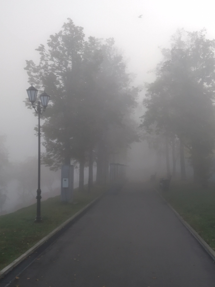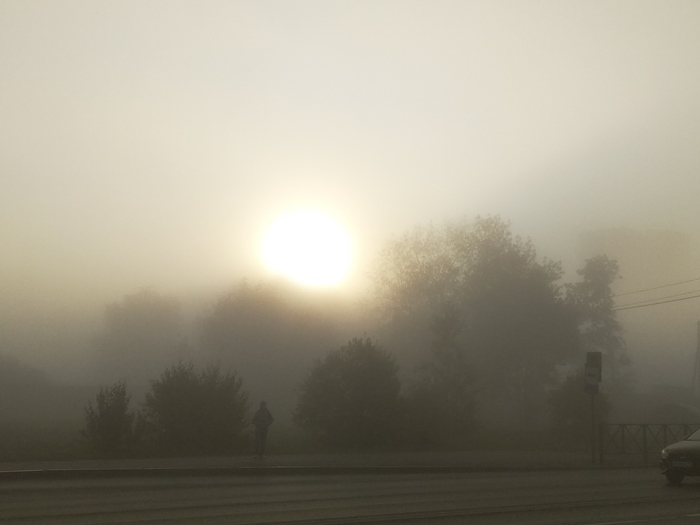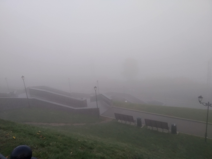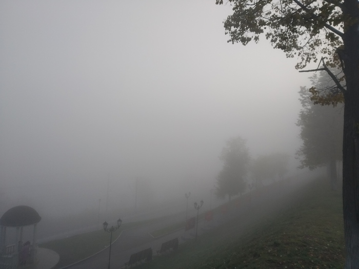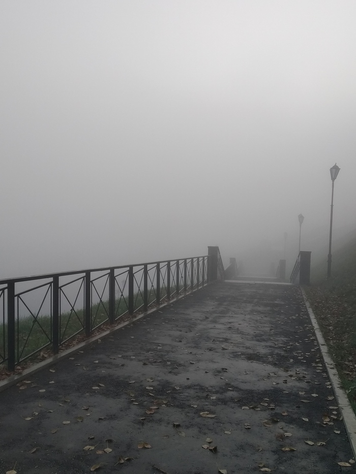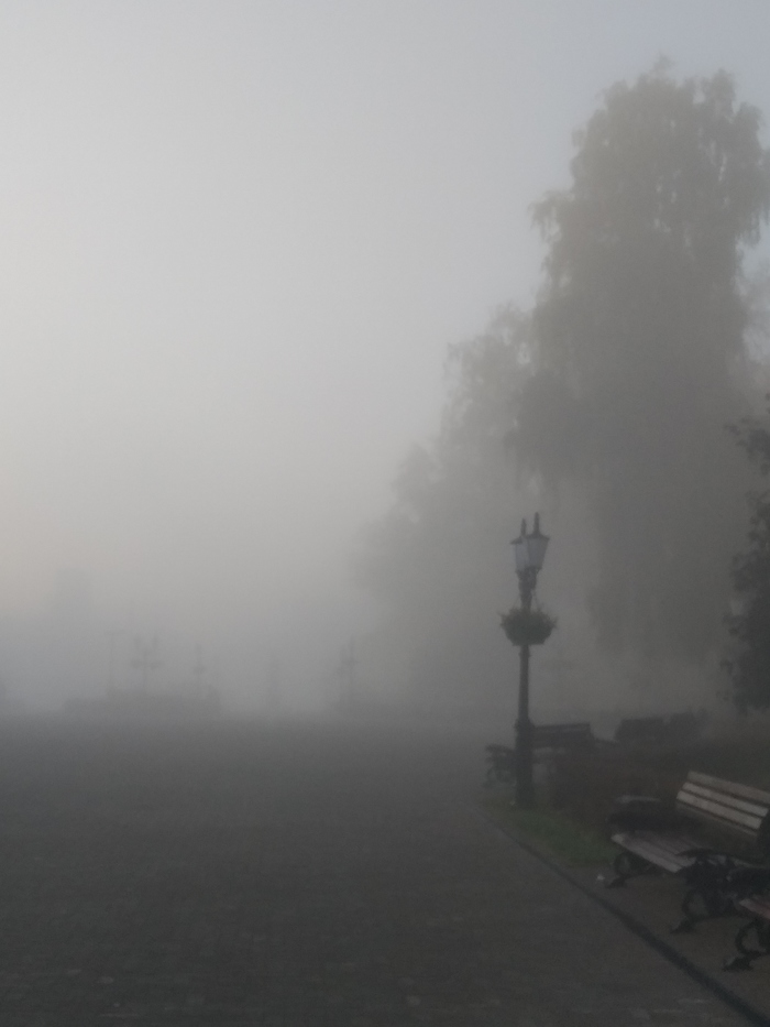 Утро ... шесть часов ... выхожу из дома ... Прозрачный слегка морозный воздух приятно бодрит ... Отправляюсь в сторону набережной нашего города ... На подходе к ней вижу туман ... не гарь а именно туман. Прям резкая стена белой пелены ... вошла в неё и вообщем началась моя прогулка которая на долго мне запомнилась.