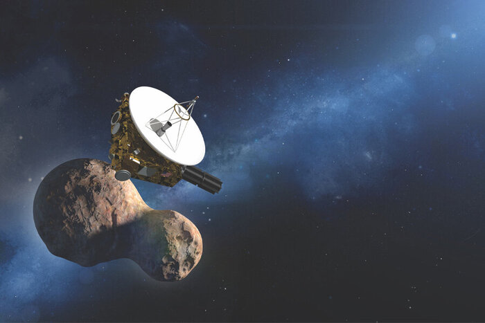 Новые горизонты пролетает транснептуновый астероид Аррокот в представлении художника