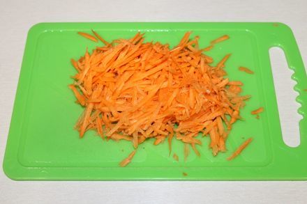 10) В сковороду, где обжаривались грибы, добавить немного растительного масла, обжарить морковь, натертую на крупной терке, до мягкости. Переложить к грибам в казан.